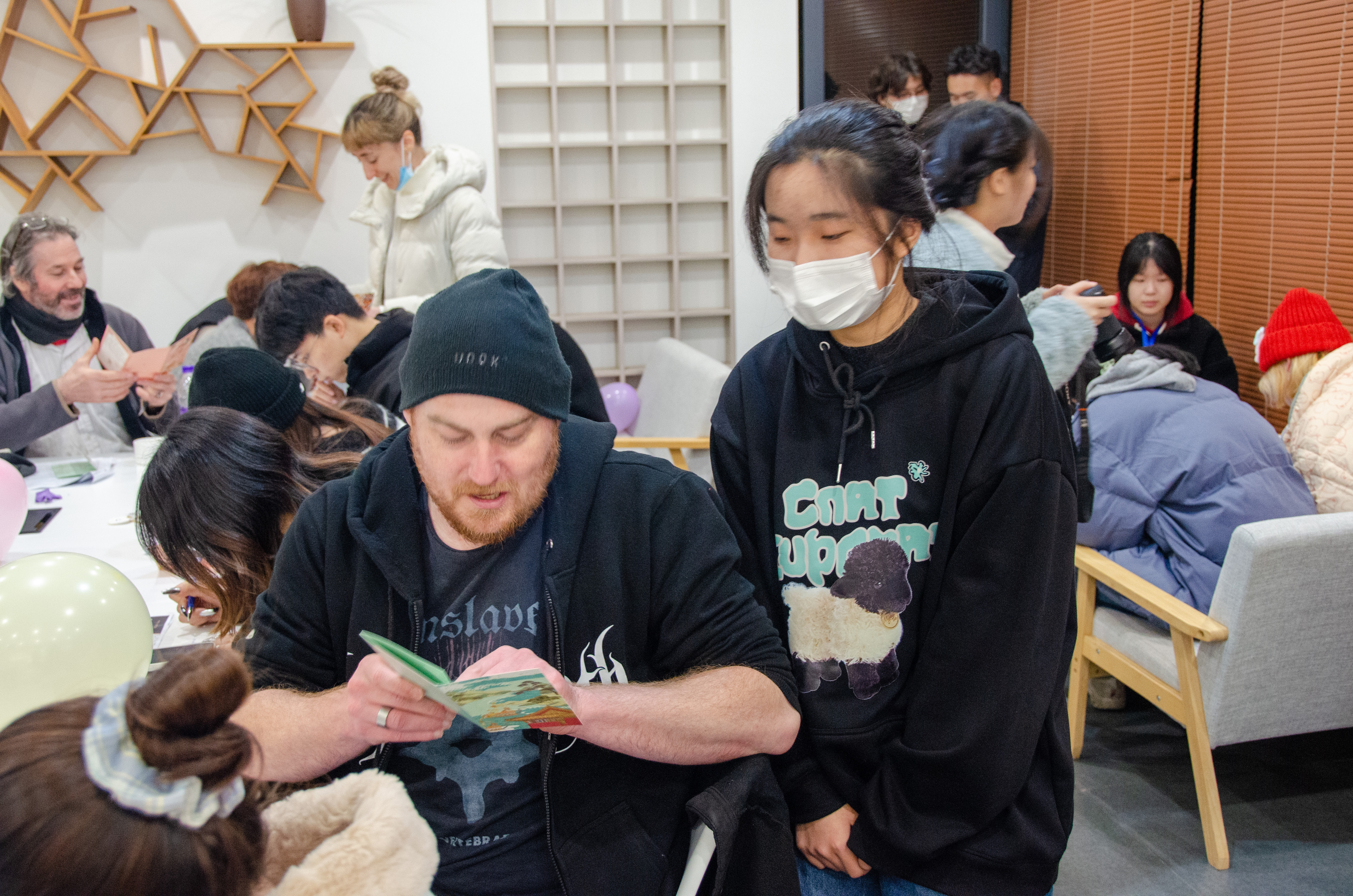 在欢快的气氛中,本次英语角圆满落幕。整场活动中,同学都积极参与,与Nataliia、Lloyd、David三位外教热情互动,畅所欲言。同学们纷纷表示,此次英语角活动,既学习了不同国家的新年风俗,又运用学到的知识制作了英文贺卡,将这份祝福在新年来临之际送给老师、父母和朋友,真正实现了学在其中,乐在其中,助力同学们在沉浸式情景中不断提升英语运用能力。