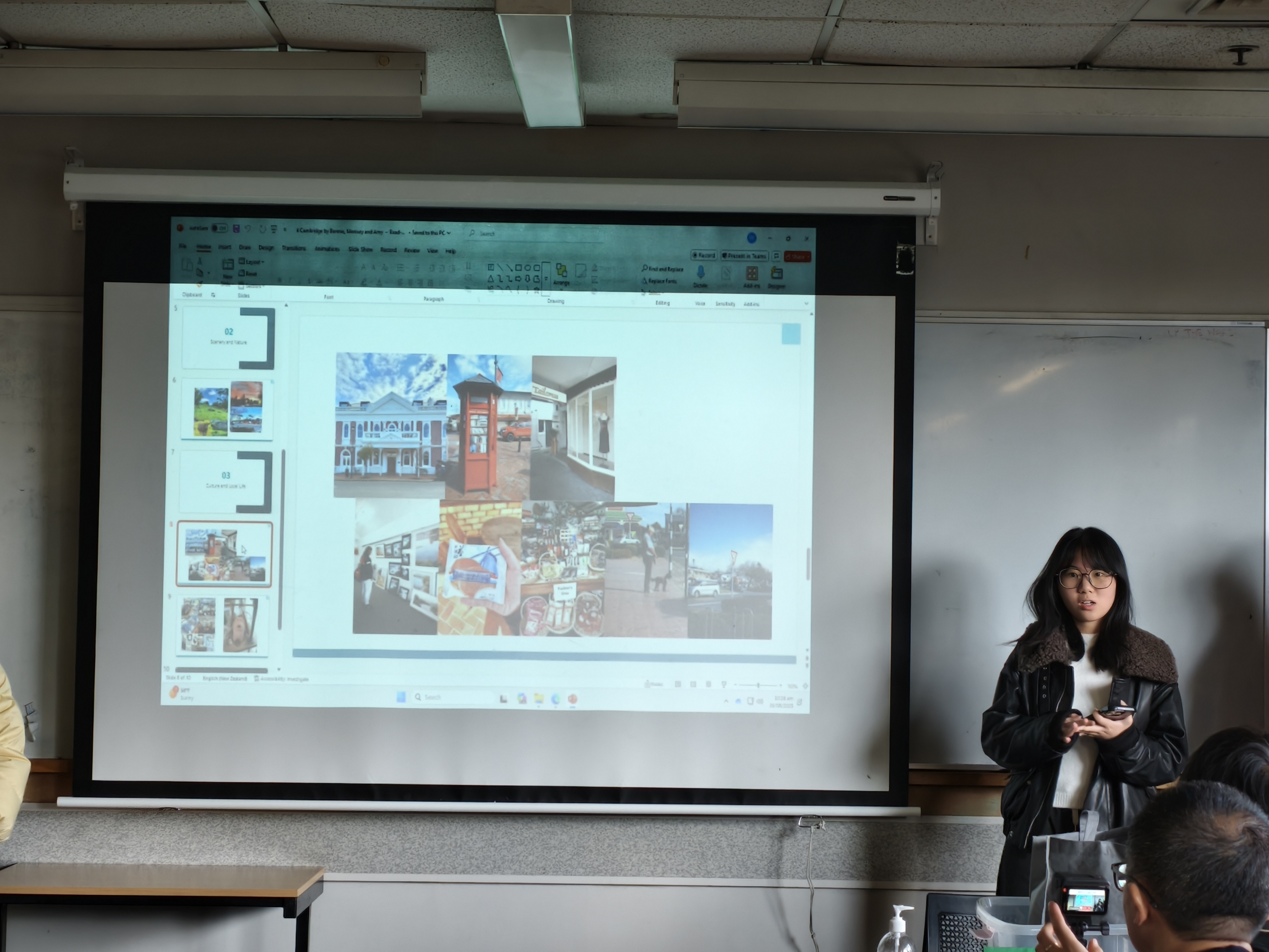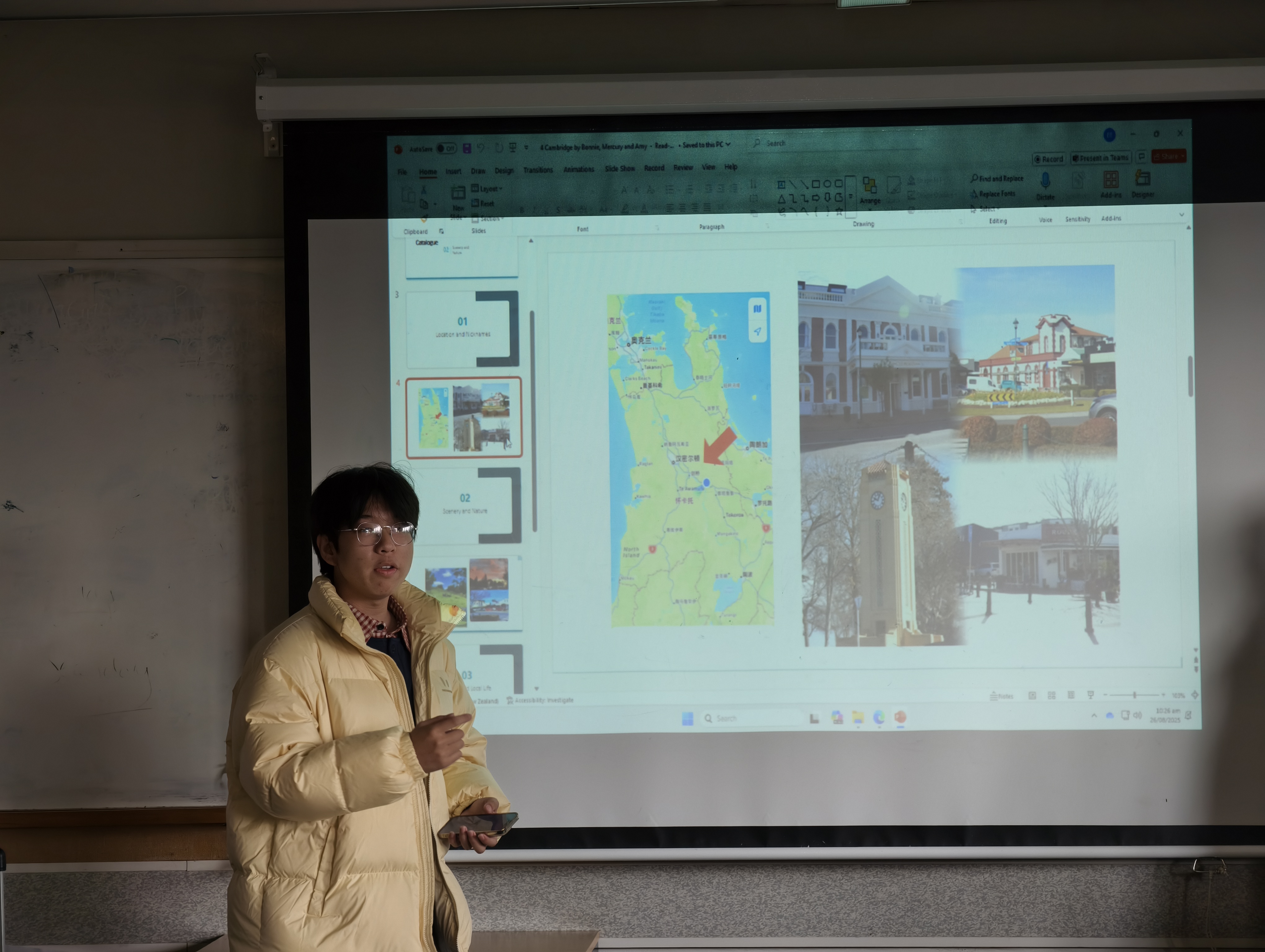 和詹同学不同的是,计算机233班王康吉在出发前便已为自己的vlog制定了周密的脚本:“我要以第一人称视角全程记录课堂学习和文化考察。”在他的镜头下,充分展示了新西兰教学中小组学习、实时互动、翻转课堂等特点。学生根据选题深入实地场景开展分组研讨、记录。在汇报课上,各组同学充分展示在怀卡托理工学院校园、汉密尔顿博物馆、霍比特村、剑桥镇等地探访的见闻与感受,自信而从容地表达让在场的新方教师都为之赞叹。结业仪式上,怀卡托理工学院国际部总监Girish Nair为全体同学颁发了语言课程学习证书。